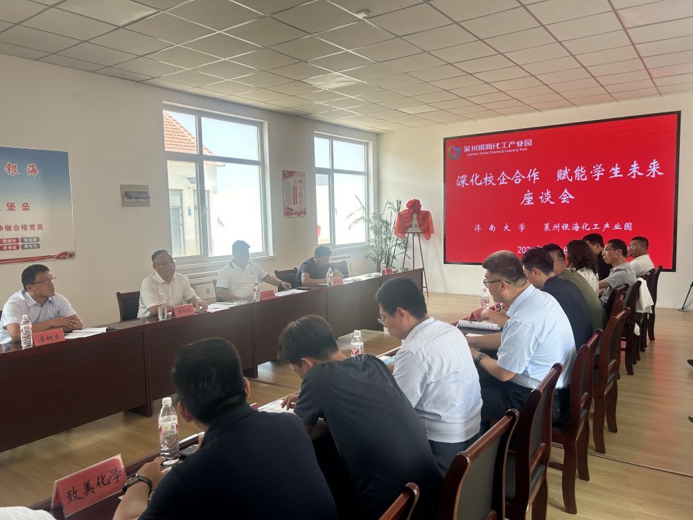 7月18日下午,黄加栋一行来到莱州市银海化工产业园开展校企合作交流。莱州市政府党组成员、副市长邱召明,莱州银海化工产业园管理服务中心党组书记、主任尹兆忠及园区12家企业负责人参加了交流活动。邱召明对beat365一行到来表示热烈欢迎,感谢beat365中文登录入口长期以来对莱州市及银海化工产业园建设的大力支持,详细介绍了莱州市企业发展情况、技术及人才需求情况,表达了与beat365中文登录入口开展全面深入合作的强烈愿望。黄加栋对莱州市和银海化工产业园给予学校发展的支持表示感谢,他指出,beat365中文登录入口的优势特色学科和科研方向与莱州市产业布局高度契合,双方前期已经在材料、机械、水利和生物等产业及化工园区建设等领域有了很好的合作基础,希望双方进一步拓展合作领域和内容,进一步深化实质性合作,以科技赋能地方区域经济发展,为学生提供更多就业机会。