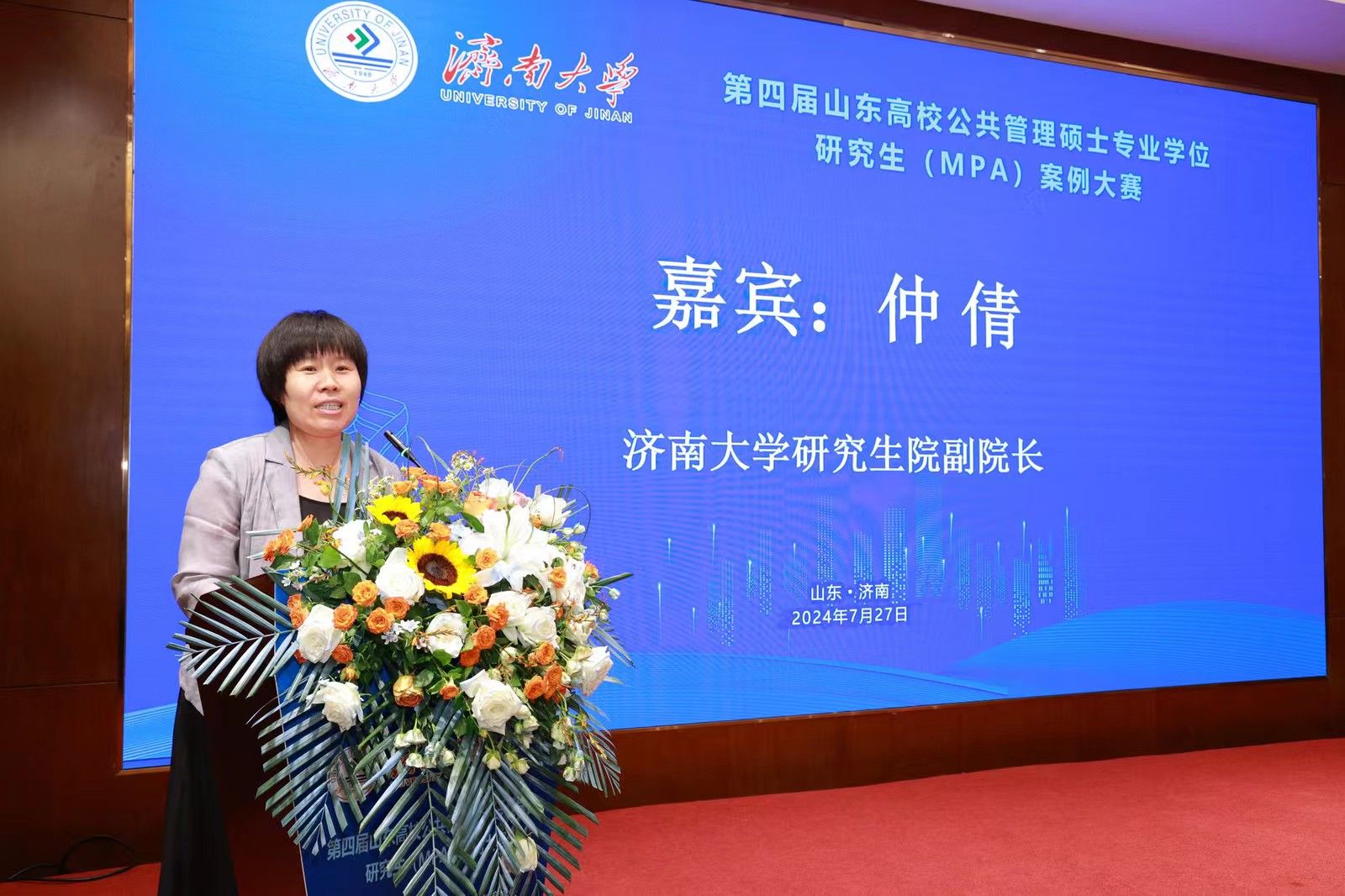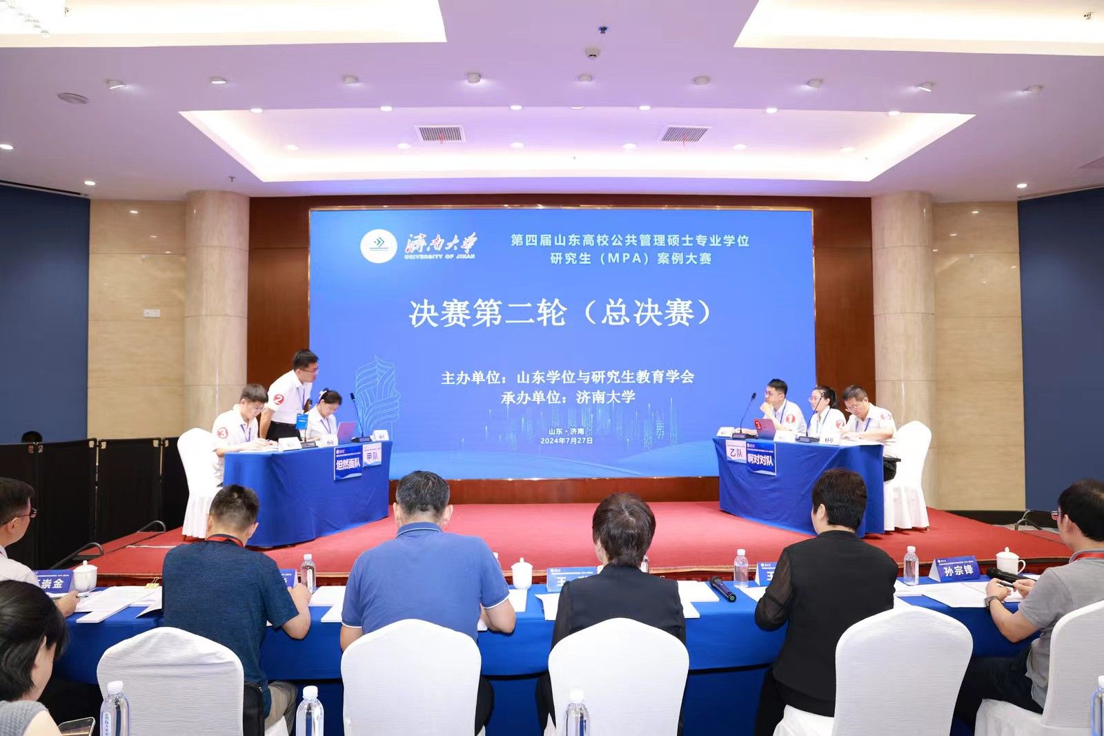 7月27日,由山东学位与研究生教育学会主办、beat365中文登录入口承办的第四届山东高校公共管理硕士专业学位研究生(MPA)案例大赛决赛在济南举办。山东学位与研究生教育学会会长、山东大学国家治理研究院副院长刘国亮,山东省教育厅学位管理与研究生教育处四级调研员胡康,beat365中文登录入口党委常委、副校长黄加栋,山东学位与研究生教育学会秘书处、山东师范大学研究生院副院长宋强出席大赛开幕式。学校研究生院、政法学院相关负责人和师生代表,以及来自全省高校的参赛师生共计130余人参加开幕式。开幕式由beat365中文登录入口党委研究生工作部部长、研究生院院长张兵主持。