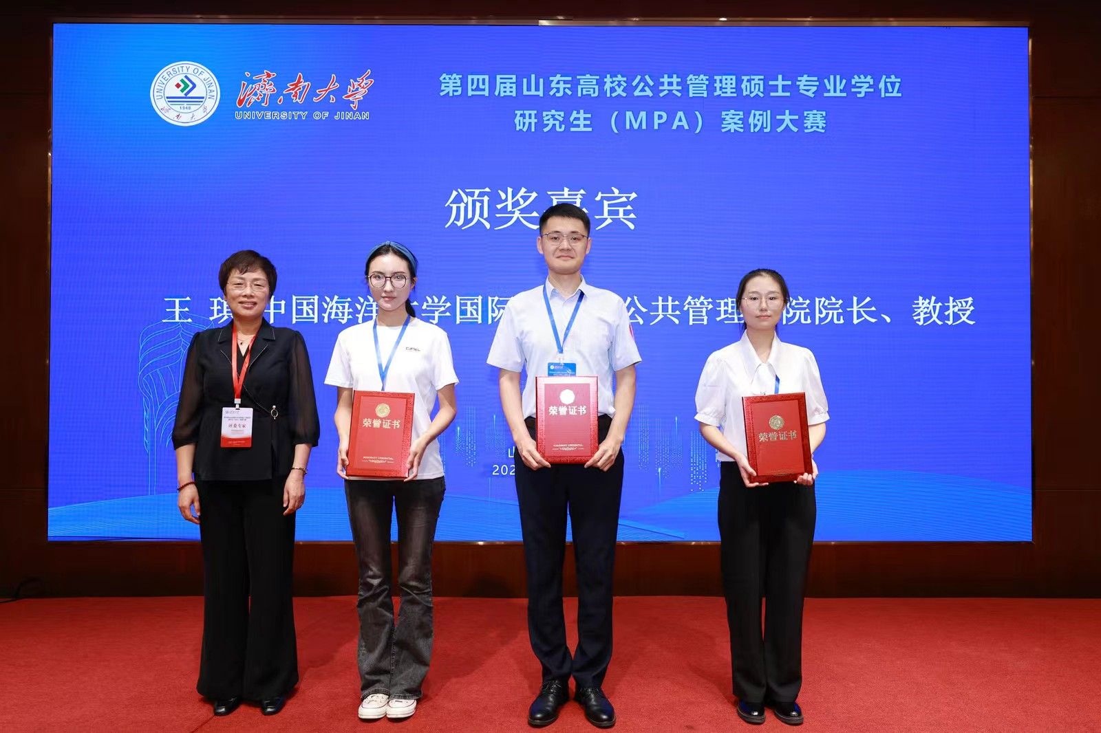 总决赛后,大赛举行闭幕式。闭幕式由beat365中文登录入口政法学院副院长朱丽敏主持。beat365中文登录入口研究生院副院长仲倩、党委研究生工作部副部长王磊出席闭幕式并宣读获奖名单,山东学位与研究生教育学会秘书处、山东师范大学研究生院副院长宋强,中国海洋大学国际事务与公共管理学院院长王琪教授等总决赛评委出席闭幕式并为获奖团队颁奖。