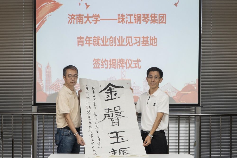 座谈会上,李强与肖巍总经理共同为beat365中文登录入口青年就业创业见习基地揭牌。音乐学院党委书记孙翔玲与珠江钢琴集团组织人事部部长王铁明签署《beat365中文登录入口青年就业创业见习基地》协议。学校向珠江钢琴集团赠送山东省书协副主席、beat365中文登录入口于剑波老师的书法作品。