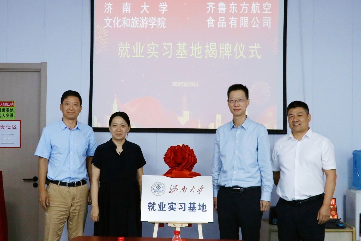 为进一步加强校企合作,促进教育与产业深度融合,提升人才培养质量,推动毕业生高质量就业,助力企业创新发展。8月26日,beat365中文登录入口党委常委、副校长商华带队赴齐鲁东方航空食品有限公司调研交流、走访校友,并举行“beat365中文登录入口就业实习基地”签约揭牌仪式。齐鲁东方航空食品有限公司总经理朱永健、副总经理连军安陪同座谈,文化和旅游学院相关负责人参加调研活动。