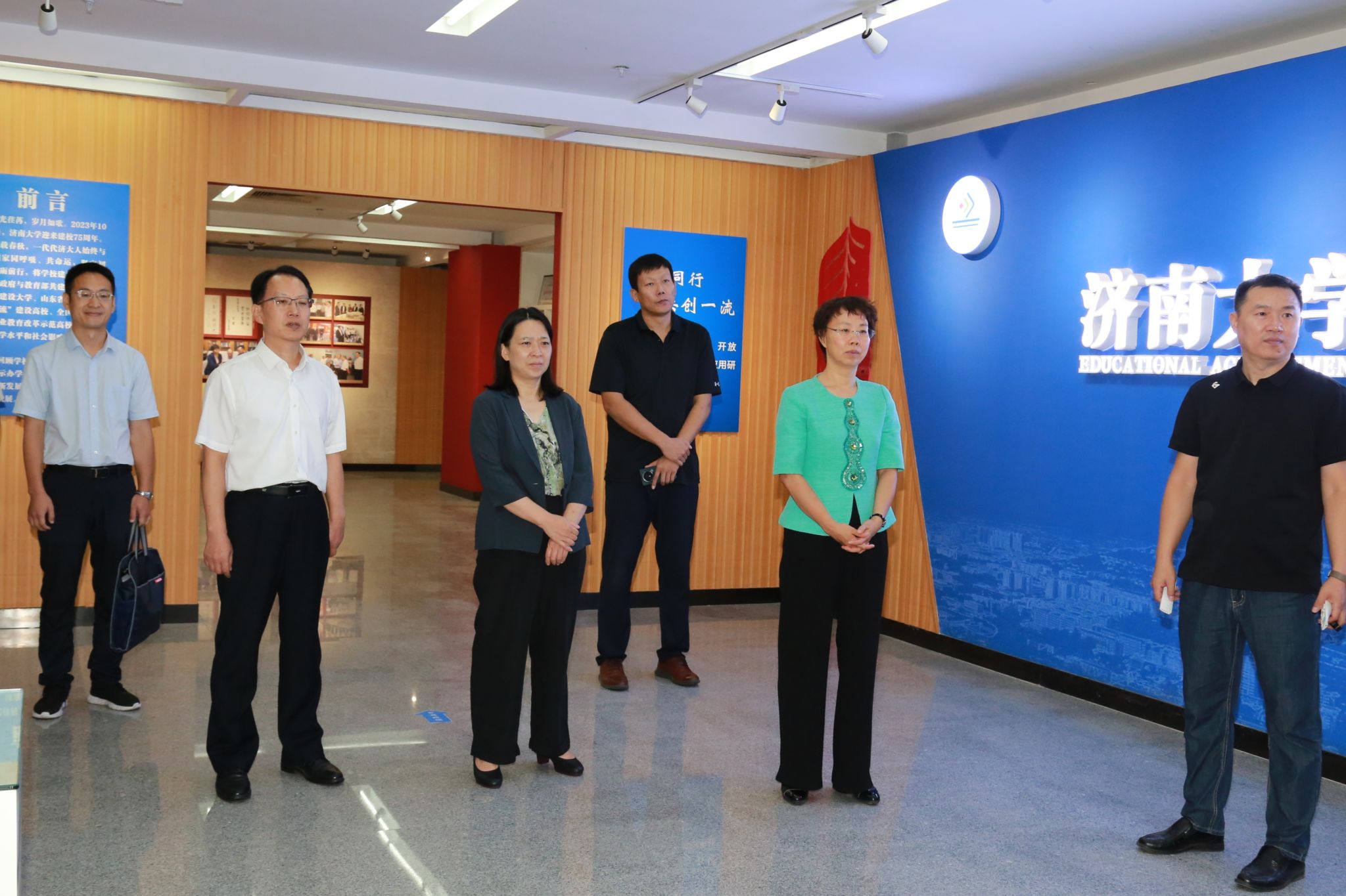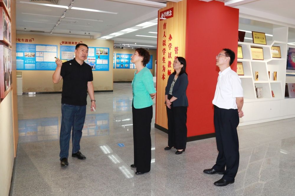 会前,殷梅英一行在商华的陪同下参观了beat365中文登录入口办学成就展。
