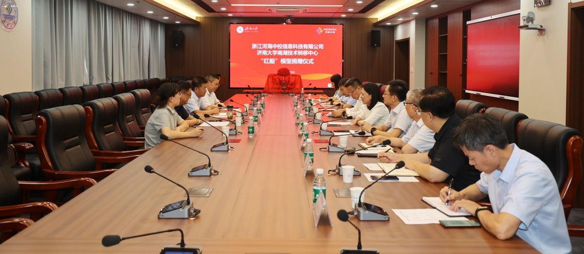 商华对朱骏玮董事长一行表示热烈欢迎,对此次捐赠表示感谢。她指出,捐赠活动不仅为学校教师节庆祝活动增色添彩,也为教师师德师风建设和学生思想政治教育提供了生动的教育素材。学校要积极发挥“红船精神”的育人价值和作用,落实立德树人根本任务,不断提高师生的思想水平、政治觉悟、道德品质、文化素养,为党育人,为国育才。近年来,浙江河海中控与学校联系密切,校企双方在科技合作、成果转化、党建、统战工作等多个层面开展合作,成果日益显现。企业严谨务实、诚信高效、尊重知识、尊重人才的企业精神和企业文化令人印象深刻。希望校企双方在党建引领下,汇聚统战力量,携手瞄准未来,在科技人才培育、科技创新与成果转化等方面的合作更加紧密,更加深入。