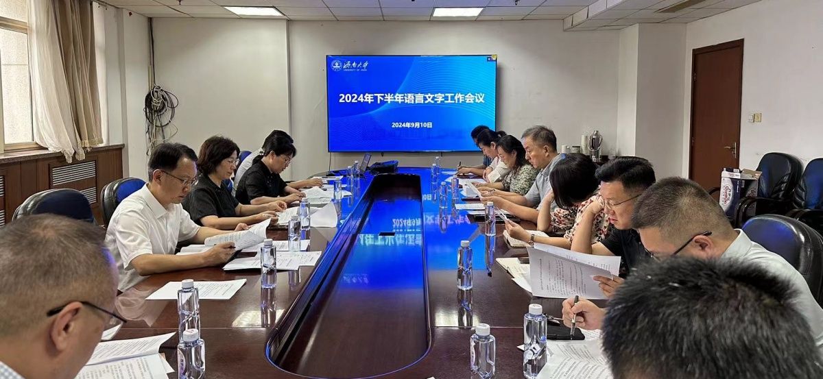 为加大国家通用语言文字推广力度,明确语言文字工作下半年工作目标与任务,推进语言文字推广基地培育与建设工作,9月10日,学校召开2024年下半年语言文字工作会议。学校党委常委、副校长王霞出席会议。党委宣传部、党委学生工作部(处)、党委教师工作部、教务处、社科处、研究生院、国际合作与交流处、团委(创新创业学院)、图书馆、文学院、外国语学院、美术与设计学院、教育与心理科学学院、国际教育交流学院等单位相关负责人和教师代表参加会议。会议由教务处副处长兼师范教育管理办公室主任张婷主持。