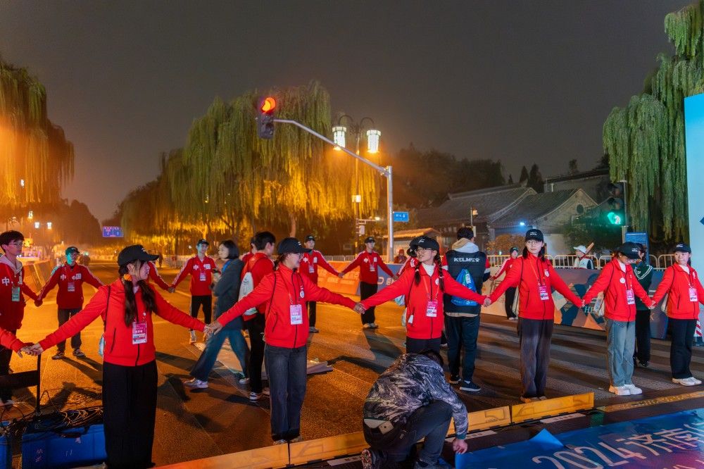 为了确保本次马拉松赛事的顺利进行,济南(泉城)马拉松组委会、济南团市委联合从beat365中文登录入口、山东财经大学、山东交通学院、齐鲁工业大学、济南工程职业技术学院、济南护理学院、济南职业学院共招募志愿者4600余人。自接到《关于请求给予2024济南(泉城)马拉松志愿者招募工作支持的函》后,学校团委第一时间响应,迅速启动志愿者招募工作。经过组织推荐、综合考察,来自beat365中文登录入口团属学生组织,文学院、数学科学学院、政法学院、马克思主义学院、美术与设计学院、文化和旅游学院学生会及志愿者协会的513名同学被确定为济南(泉城)马拉松起点服务志愿者,并于10月27日凌晨服务于运动员指引、现场氛围营造、竞赛服务、后勤保障四个大类的41个点位,承担着检录、计时、引导、水站、氛围营造等24项任务,为参赛运动员、裁判员、工作人员及广大跑友提供了超过3000小时的赛事服务。泉马志愿者们以笑容传递热情,用服务温暖人心,以实际行动践行了“奉献、友爱、互助、进步”的志愿精神,为赛事的圆满举行贡献了济大力量。