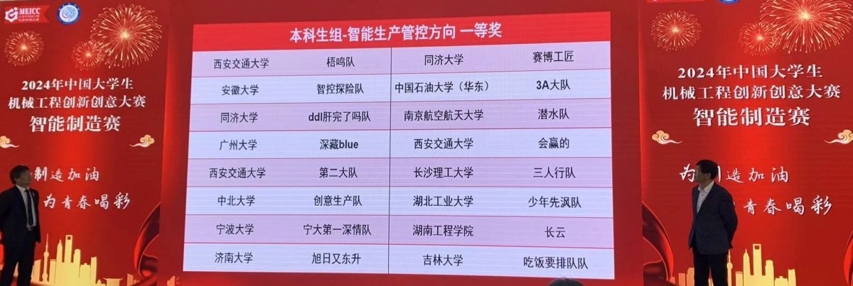 beat365中文登录入口机械学院“智能制造工程”专业致力于智能制造领域人才培养,自2020年首次招生以来,一直秉承“以练促赛”“以赛促学”的培养理念,高度重视学生创新能力培养,积极遴选优秀教师精心指导,广泛动员学生踊跃参与,工程训练中心充分发挥创新实训基地作用。在智能制造师生的共同努力下,参赛队员团结协作、勇于创新、不断挑战自我,在285所高校、1927支代表队参与的省赛选拔赛中披荆斩棘、脱颖而出,共获得15项省级奖项,6支队伍成功晋级全国总决赛。在全国总决赛中,再次与126所高校、261支参赛队伍展开激烈角逐,最终斩获一等奖1项、二等奖4项、三等奖3项,共计8项全国奖项,其中赵秀霞老师指导的由智造2022级张宇轩、龚玉琳,机工2023级刘衡三位同学组建的“旭日又东升队”勇夺全国一等奖,实现了beat365在此项赛事中获全国一等奖的突破!