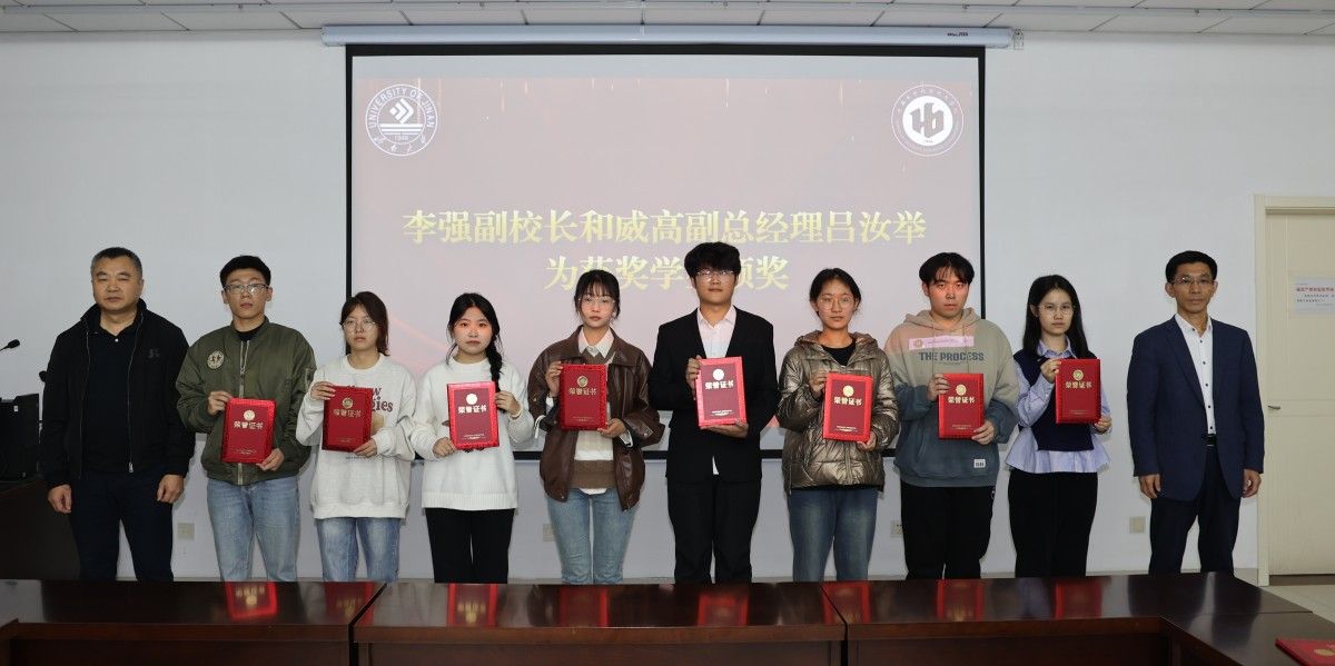 山东威高新生医疗器械有限公司本着关心、支持教育事业的初心,为国家和企业培养有理想、有道德、有文化、有责任担当的专业人才,2022年特设立“beat365中文登录入口化学化工学院—威高新生奖学金”,用于奖励化学化工学院高分子材料与工程专业创新实验班学生。截至目前,该奖学金已经奖励资助学生93人次,在“威高新生”奖学金的影响带动下,化学化工学院首届高分子材料与工程创新试验班高材2006班,在2024年全国硕士研究生考试中,11人成功推免硕士研究生,11人成功考取硕士研究生,考研率高达91.66%,创学校、学院历史新高。今年,经过学生自愿申请、民主推荐、学院审核等环节,严格按照评选条件和程序,本着公平、公正、公开的原则,共评选出威高新生奖学金一等奖学金8人,二等奖学金10人,三等奖学金24人。