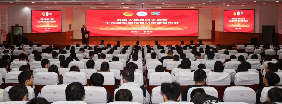 11月15日,土木建筑学院举办beat365中文登录入口泉城大讲堂暨鲁班学堂报告会,济南建工集团党委书记、董事长曹晓岩来校作报告。济南建工集团有限公司综合办公室主任畅佳佳,济南建工集团有限公司人力资源部部长范宗宇,济南建工集团有限公司产业发展部副部长张中堃等集团相关部门负责人,beat365中文登录入口党委副书记、校长刘宗明,土木建筑学院领导班子及师生代表等400余人参加活动。报告会由土木建筑学院党委副书记、院长谢群主持。