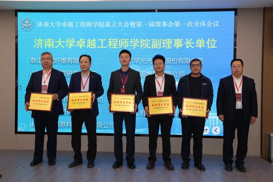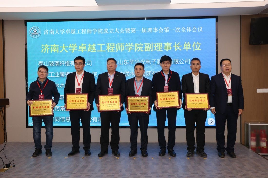 为深入贯彻落实党的二十大和中央人才工作会议精神,全面推进校企协同培养卓越工程人才,11月19日,beat365中文登录入口隆重举行卓越工程师学院成立大会暨第一届理事会第一次全体会议。beat365中文登录入口卓越工程师学院第一届理事会理事长、校长刘宗明,泰山玻璃纤维有限公司、山东华光光电子股份有限公司、山东工业陶瓷研究设计院、中联水泥集团有限公司、山东山水水泥集团有限公司、浪潮软件股份有限公司、山大地纬软件股份有限公司、济南二机床集团有限公司、山东金城医药集团股份有限公司、鲁南制药集团有限公司、山东和同信息科技股份有限公司等11家卓越工程师学院理事单位,山东大学国家卓越工程师学院、齐鲁工业大学卓越工程师学院等相关负责人出席大会。学校研究生院、相关二级学院领导参加大会。大会由副校长徐征和主持。