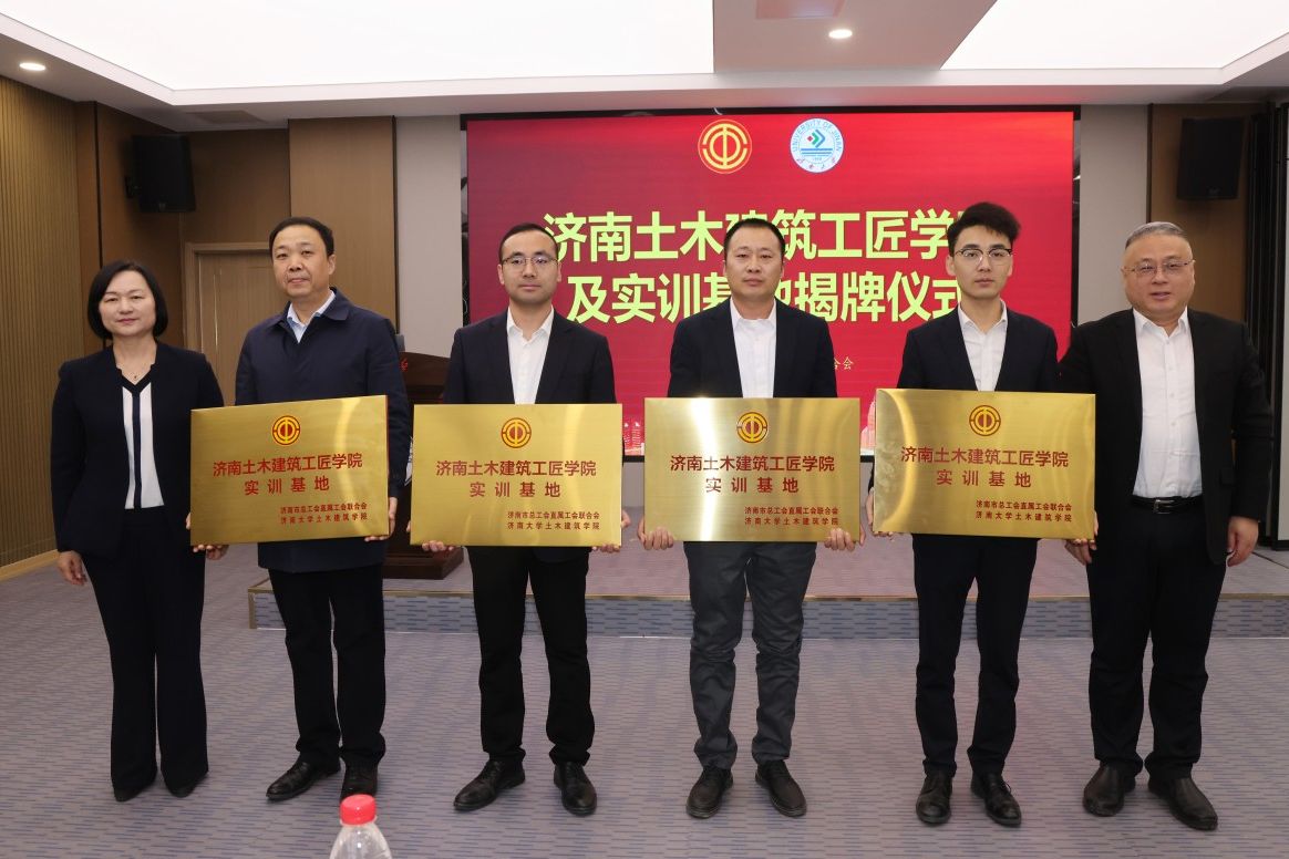 仪式上,申世平、黄加栋共同为“济南土木建筑工匠学院”揭牌,为“济南土木建筑工匠学院实训基地”授牌。市总工会直属工会联合会与beat365中文登录入口土木建筑学院共同签署济南土木建筑工匠学院框架协议,并为获得2024年度“直属工会工匠”荣誉的企业代表颁奖。