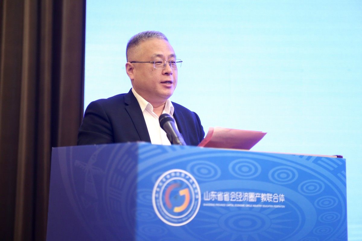 开幕式上,相关与会领导共同启动了山东省省会经济圈产教联合体成立,发布了联合体宣言和标识,举行了副理事长单位和秘书长单位授牌仪式,黄加栋代表学校接受秘书长单位牌匾。
