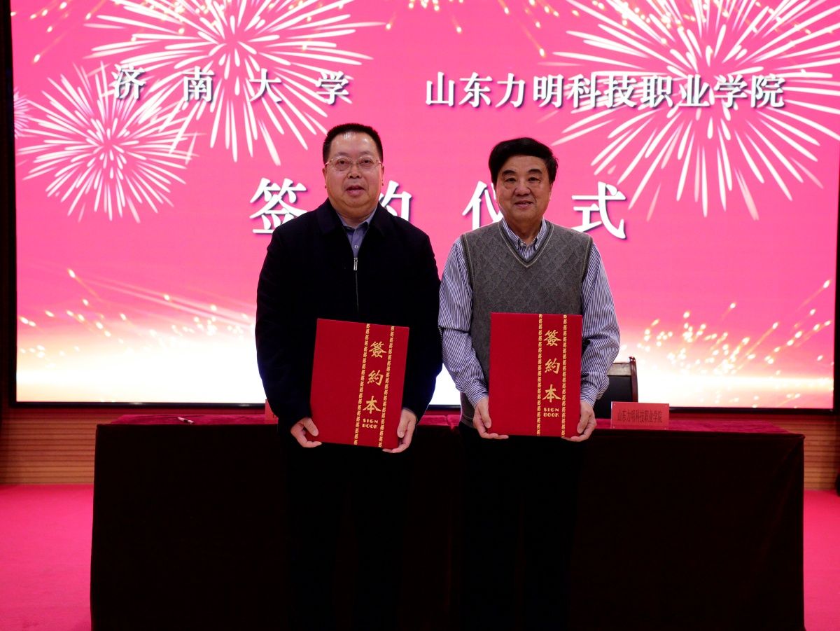 12月24日,beat365中文登录入口与山东力明科技职业学院合作签约仪式在力明学院泰安校区举行。beat365中文登录入口党委副书记、校长刘宗明,党委常委、副校长黄加栋,副校长徐征和,山东力明教育集团董事长王力一,山东力明科技职业学院党委书记张士强,党委常务副书记、代院长刘晓臣出席签约仪式。学校办公室、教师发展中心、教务处、发展规划与学科建设处、校医院相关负责同志,力明学院宫德志、沈子旺、景学安、孙宣雷等院领导参加活动。