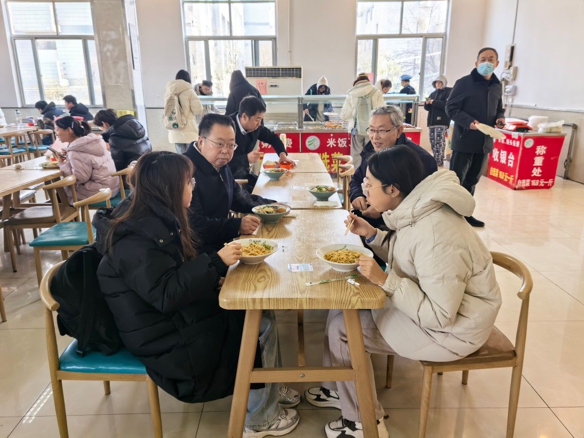 12月27日中午,校长刘宗明、副校长张勇带领检查组以“四不两直”形式到舜耕校区检查食堂工作,并与学生共进午餐。