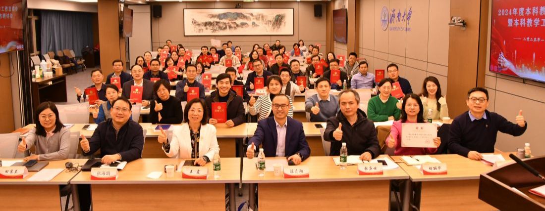 会议对2024年度在本科教学管理工作各个方面表现突出的个人和集体进行了表彰。荣获“审核评估工作突出贡献奖”“专业认证工作突出贡献奖”“招生宣传突出贡献奖”“实践教学管理突出贡献奖”“教材建设突出贡献奖”“语言文字工作突出贡献奖”“教学比赛优秀组织奖”“示范性特色学院建设优秀奖”“大思政育人优秀组织奖”“人才培养改革突出贡献奖”“学院导师制工作优秀组织奖”12个奖项的个人和集体代表依次上台领奖。外国语学院副院长王勇、教育与心理学科学院副院长李开云代表获奖人员,感谢学校对学院和个人工作的肯定与支持,并且表示将继续秉持教育初心,牢记育人使命,为本科教育教学高质量发展贡献力量。