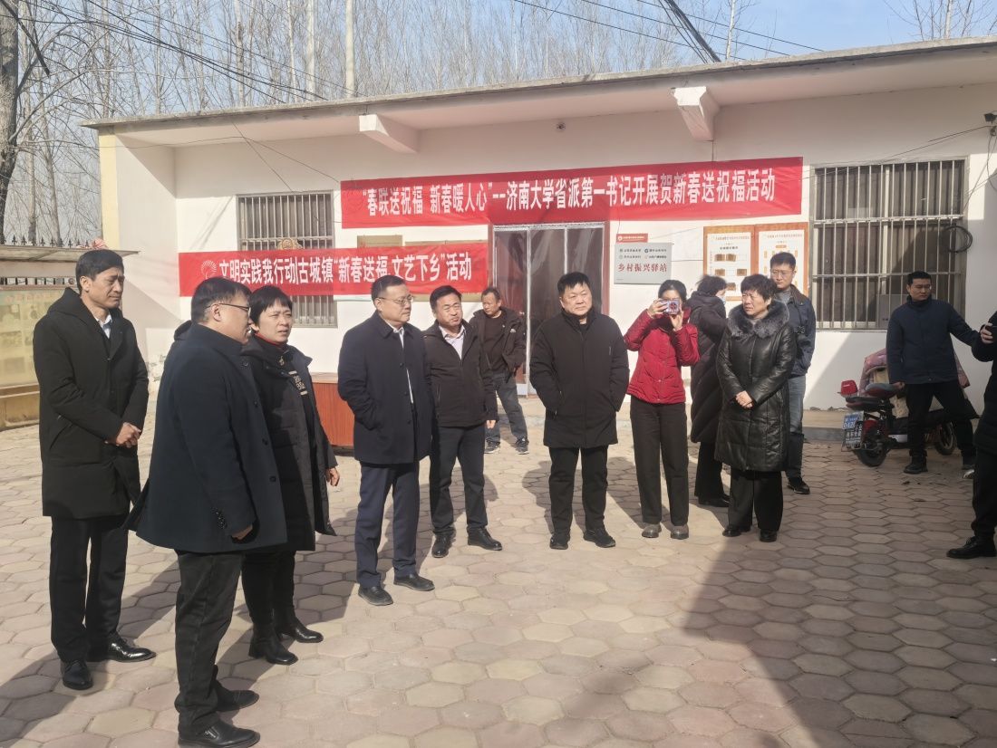 1月14日,学校党委副书记商华带队赴莘县古城镇看望beat365中文登录入口第六轮省派第一书记并开展乡村振兴工作调研。学校党委组织部、党委学生工作部(处)、文化和旅游学院相关负责人及专家教授陪同活动。莘县县委书记孙奇宏,县人大常委会党组书记、主任顾磊,县委副书记(挂职)董钦,古城镇党委书记魏永利,古城镇党委副书记、镇长孙洪朝及省派第一书记参加有关活动。