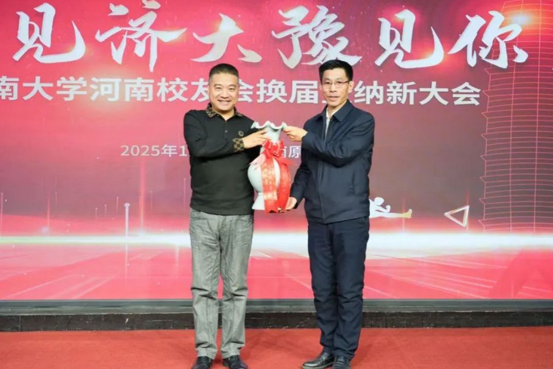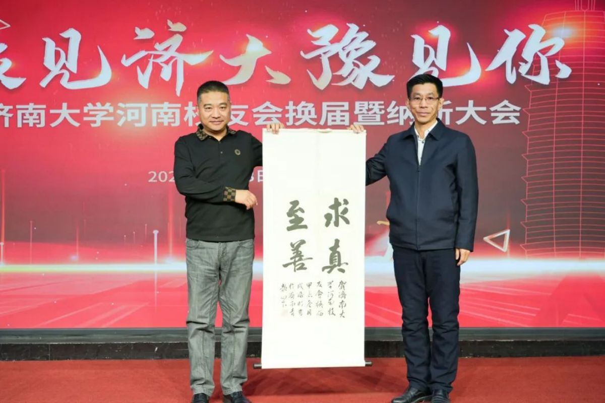 杨德柱作为新当选会长代表新一届校友会讲话,他首先向上一届校友会和广大校友表示衷心的感谢,深情回顾了河南校友会取得的成绩,阐述了未来的发展规划。他表示,校友会的蓬勃发展离不开广大校友的无私奉献以及母校领导的关怀与指导。未来,他将携手河南校友,积极践行“传播济大精神,凝聚济大力量,赋能校友发展”的使命,开展形式多样的交流合作活动,把河南校友会打造成服务校友、回馈母校、贡献社会的资源共享型校友会。