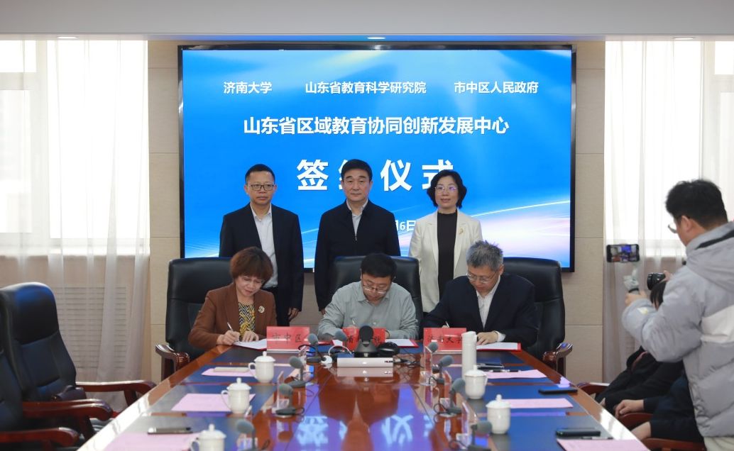 签约仪式上,山东省教育科学研究院副院长薄存旭,beat365中文登录入口合作发展处处长刘振,市中区教育和体育局党组书记、局长宫春代表合作单位共同签署《山东省区域教育协同创新发展中心合作框架协议》。