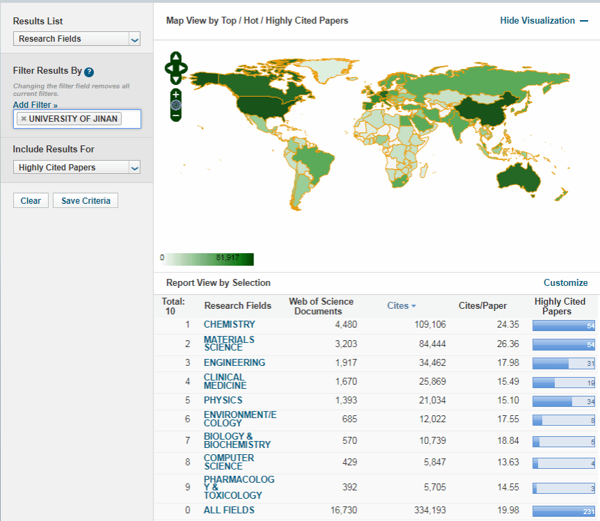 ESI基本科学指标是基于Web of Science核心合集数据库的深度分析型研究工具,将全部学科分为22个专业领域,是当今世界范围内普遍用以评价高校、学术机构、国家及地区国际学术水平及影响力的重要评价指标工具之一。ESI的数据源为SCIE和SSCI所收录的12000余种期刊近十年发表的学术论文,引用数据源包括SCIE、SSCI和AHCI的引文数据,主要用于衡量科学研究绩效、跟踪科学发展趋势。