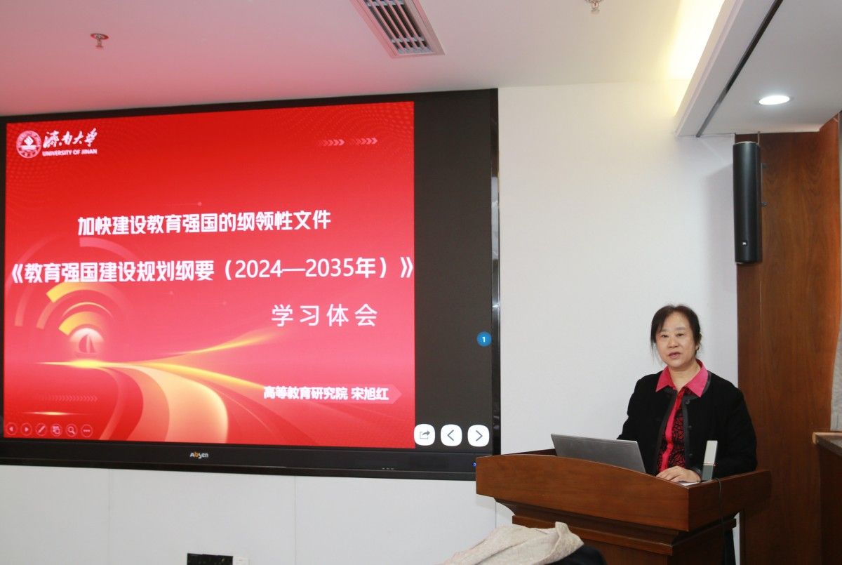 刘春华结合学校实际,就抓好学习内容的贯彻落实,提出意见和要求。一是扛紧扛牢政治责任,纵深推进全面从严治党。要旗帜鲜明讲政治,持续强化理论武装,不断提高学习质效,进一步提升政治判断力、政治领悟力、政治执行力,切实以理论上的清醒确保政治上的坚定。要履职尽责强担当,严格落实党委书记第一责任人职责、班子成员“一岗双责”,支持纪委履行监督责任,健全统一联动、合力运行的责任落实机制。要齐心协力抓落实,将思想行动统一到学校党委部署上来,认真贯彻全面从严治党工作会议精神,谋划好、落实好年度任务分工意见,开展深入贯彻中央八项规定精神学习教育,持续营造风清气正政治生态和育人环境。二是提质提效党的建设,不断增强党建引领作用。要加强基层党组织建设,坚持大抓基层的鲜明导向,全面贯彻新时代党的组织路线,严格规范议事决策,着力增强基层党组织政治功能和组织功能。要加强干部队伍建设,树牢重实干、重实绩、重担当的鲜明导向,构建全周期教育培养体系,不断提升干部的大局意识、战略眼光和管理能力。要加强党建工作创新,推动党建活动项目化、特色化、品牌化,培育党建“双创”特色品牌和实践成果,围绕“一融双高”扎实开展党建研究,切实以高质量党建引领高质量发展。三是抓住抓好发展机遇,加快推动学校事业发展。要深刻把握中国式现代化这个最大政治,深入学习贯彻党的二十届三中全会精神,切实在贯彻落实党中央决策部署中推动高水平大学建设,始终把稳正确前进方向。要自觉在教育强国强省建设中找定位、谋发展,全方位融入新时代社会主义现代化强省建设,高质量编制学校“十五五”发展规划,改革创新推动事业发展。要持续增强服务发展效能,完善学科设置调整机制和人才培养模式,扎实开展有组织科研,统筹推进服务县域经济高质量发展和“百校万企万师双进”行动,以实际工作成效展现济大担当。四是聚焦聚力巡视工作,协同抓好各项任务落实。全校上下要提高政治站位,进一步统一思想认识,自觉站在做到“两个维护”的政治高度,把握工作要求,接受巡视监督。要抓好问题整改,坚持即知即改、立行立改,将“当下改”与“长久立”相结合,以巡视实效推动学校高质量发展。