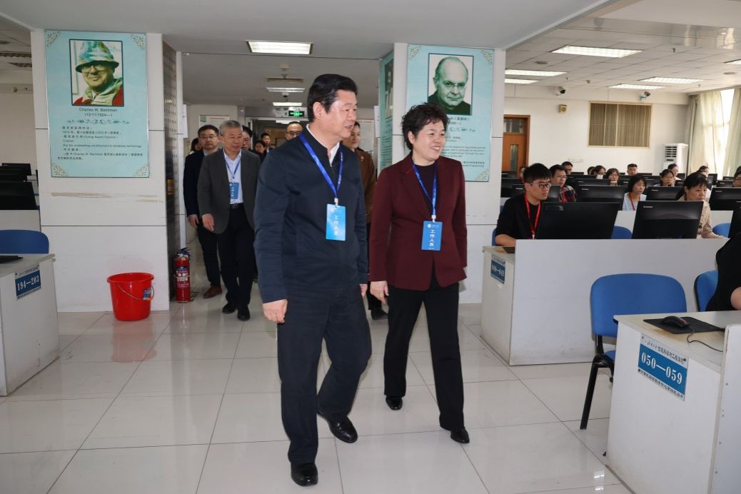 在专升本评卷现场,张志刚一行对机房硬件条件、技术支持、质量管控和后勤保障等方面进行逐一巡查,仔细询问评卷工作筹备组织、工作进展及评卷质量监督等内容。