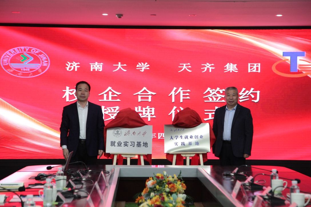在山东天齐置业集团股份有限公司,集团董事、总经理吕茂森介绍了企业发展概况,并感谢学校源源不断地为企业输送高质量毕业生,他对beat365人才培养质量给予高度评价,表示已有一大批济大毕业生成长为企业骨干力量。刘振亮、谢东峰等优秀校友作了发言,表达了对母校和企业的感恩。徐征和在致辞中介绍了学校学科建设、人才培养及科研创新成果,对天齐集团长期以来对学校各项工作的大力支持表达衷心感谢,他希望以此次交流会为契机,进一步深化校企全方位合作,共同助力毕业生高质量就业和区域经济高质量发展。会上,校企双方签订了beat365中文登录入口就业实习基地、beat365中文登录入口就业创业实践基地协议并举行了揭牌仪式。