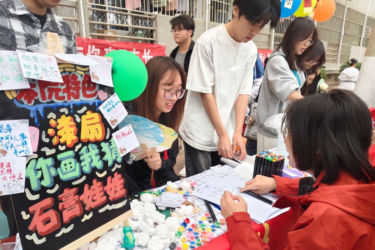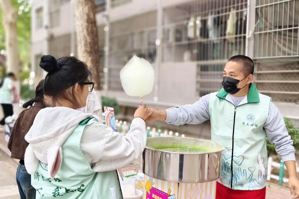 心理游园会以阳光心理为核心理念,设置“知心区”“润心区”“动心区”“可心区”“甜心区”“悦心区”六大活动区域,通过心理义诊、运动减压、艺术疗愈、知识问答、朋辈辅导、心理测评、个体咨询和团体辅导等多种活动形式,引导学生提升心理素养,发现守护心灵的N种可能。“知心区”设置“专家义诊,心屿摆渡”活动,邀请济南市精神卫生中心心理专家开展心理义诊。“润心区”设置“OH 卡牌,心镜探真”“测评咨询,心域导航”“朋辈辅导,心语共聆”活动,通过潜意识探索、心理测评、心理辅导帮助学生认识自我,滋润心灵。“动心区”设置“趣味乒乓,吹散心尘”“彩绘泥塑,心彩绽放”活动,通过运动疗愈、艺术疗愈缓解压力、放松心情。“甜心区”设置“棉花糖DIY,甜到心里”活动,通过手工制作和食物疗愈探寻自我关怀的方式。“悦心区”设置“学院活动,心灵集市”,各学院现场开展丰富多彩的心理健康活动并展示心理月期间品牌活动及相关成果。终点“可心区”设置“画自画像,心绘自观”“积章套圈,圈住开心”活动,通过自我描绘、积章套圈,总结游园活动,升华育人效果。活动现场气氛热烈,趣味十足,持续吸引数千余名师生前来体验。