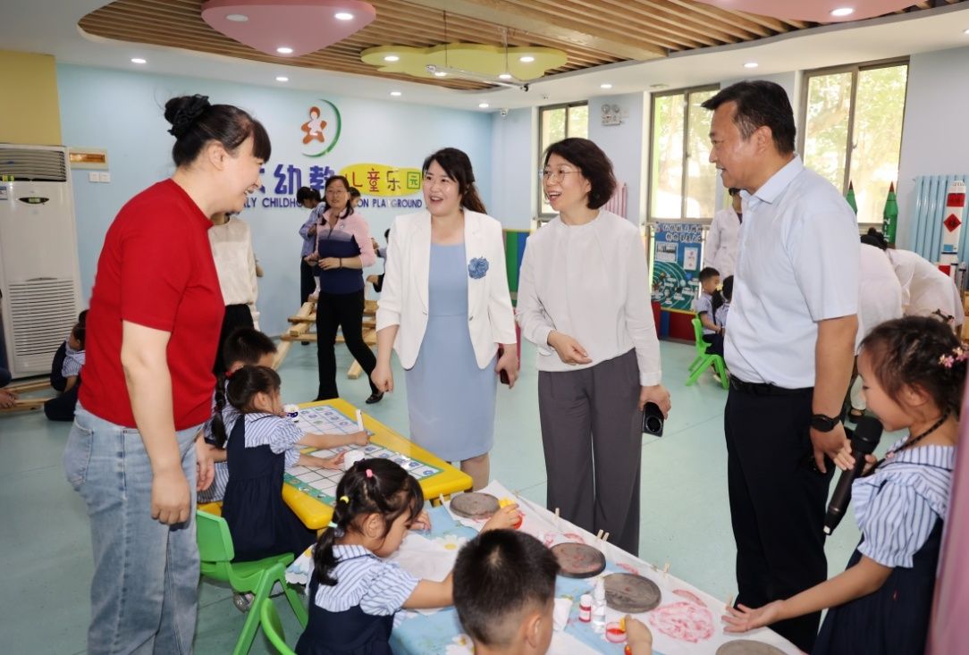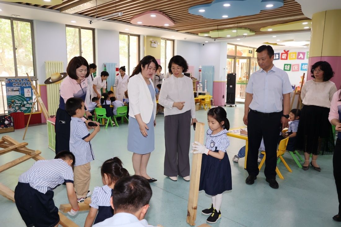 在幼儿园,学校领导听取了幼儿园关于园所建设、品牌服务、创新特色等方面的汇报,参观了建构大厅、户外游戏区、美工坊和科学探究室、档案室,详细了解幼儿园园本课程设置和孩子们的日常学习、生活情况。观看了孩子们充满童趣的节日手工创作展、美术作品展,对孩子们的艺术作品给予了高度称赞。其间,学校领导与教职工亲切交谈,希望广大教职工继续发扬优良园风和教风,爱岗敬业,教书育人,坚持用无私奉献的精神为孩子们创造更好的教育条件,用心、用情呵护孩子们健康成长。