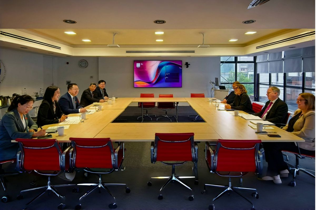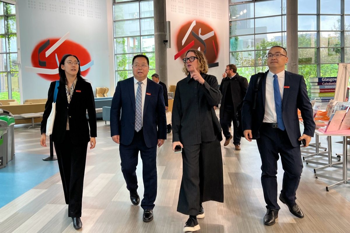 在格拉斯哥加利多尼亚大学,代表团与副校长丹·安德森(Dawn Anderson)女士及相关学院负责人进行会谈,双方围绕中外合作办学机构管理架构、师资队伍、人才培养、机构运营等细节深入交换意见,并制定了下一步行动计划。