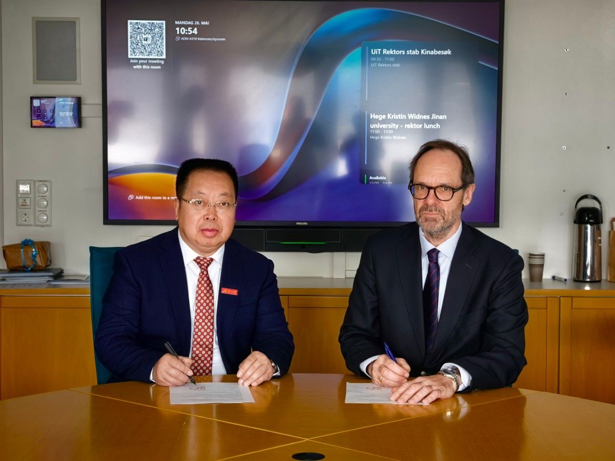 在挪威北极大学,代表团与副校长扬-冈纳尔・温特(Jan-Gunnar Winther)及工程学院相关负责人座谈,双方就科研合作、人才培养、师生交流项目等领域的合作达成共识,并签署合作谅解备忘录。挪威北极大学是世界上最北端的大学,主要研究重点是极地环境、气候研究、土著人民、和平与冲突转型、远程医疗、医学生物学、空间物理学、渔业科学、海洋生物勘探、语言和计算化学。其理论语言学高级研究中心(CASTL)和理论与计算化学中心(CTTC)都被指定为挪威卓越中心。