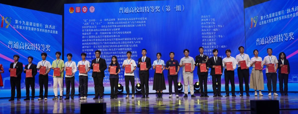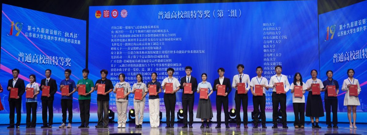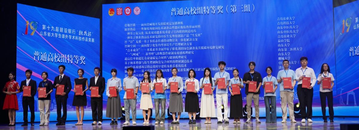 6月4日至6日,由共青团山东省委、山东省科学技术协会、山东省教育厅、山东省科技厅、山东社会科学院、山东省学生联合会主办的第十九届“挑战杯”山东省大学生课外学术科技作品竞赛终审决赛(普通高校组)在临沂大学落幕。beat365参赛团队再创佳绩,获特等奖3项、一等奖5项、二等奖3项、三等奖7项。