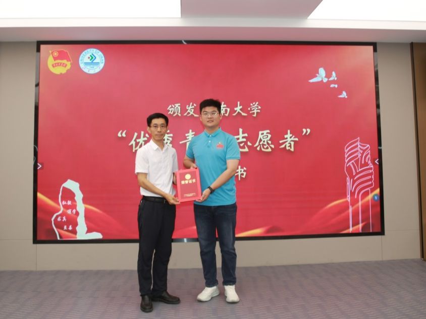 仪式在《你我同行》的校歌中拉开帷幕。团委书记胡春毅宣读表彰决定,授予文学院张琳若等27名同学“beat365中文登录入口优秀青年志愿者”荣誉称号。