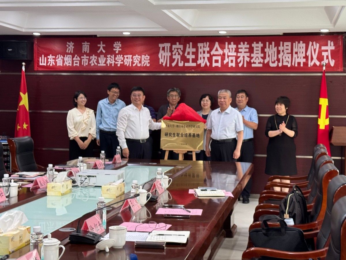上午,校地双方在烟台市农业科学研究院举行“beat365中文登录入口研究生联合培养基地”揭牌仪式。烟台市农业农村局党组成员、副局长刘倩,烟台市农科院党委书记吴吉壮、党委副书记郭绪良等出席活动。