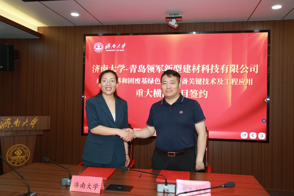 青岛领军新型建材科技有限公司成立于2020年,公司专注于以石墨、金矿尾泥等工业固废为原料,研发生产绿色环保的新型建材,涵盖装饰材料、保温材料及市政工程用材等。企业通过建设年产30万立方米防火保温板等生产线,实现年处理固废约160万吨。学校与青岛领军新型建材科技有限公司共建了省市级院士工作站、市级专家工作站及校级研究生联合培养基地,并联合承担了山东省重点研发计划、山东省新旧动能转换重大产业攻关项目等多项省级科研任务。