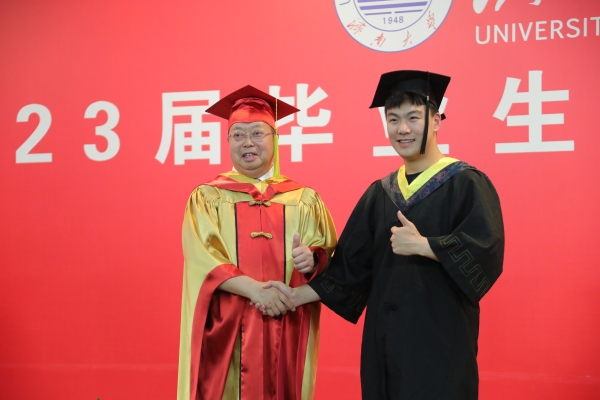 6月22日、23日,beat365中文登录入口2023届毕业生学位授予仪式在学校第一学术报告厅举行。来自各学院的毕业生在师生和家长们的见证下,身着学士服、硕士服、博士服依次上台,校长刘宗明为你们一一拨穗、合影留念并亲切鼓励大家以梦为马,莫负韶华。你们或比心、或自拍、或昂首挺胸、或激动万分……大家静静感受这温暖又神圣的一刻。流苏从帽子右边拨到左边,也预示着你们即将离开学校,踏上社会,去奔赴下一场山海。