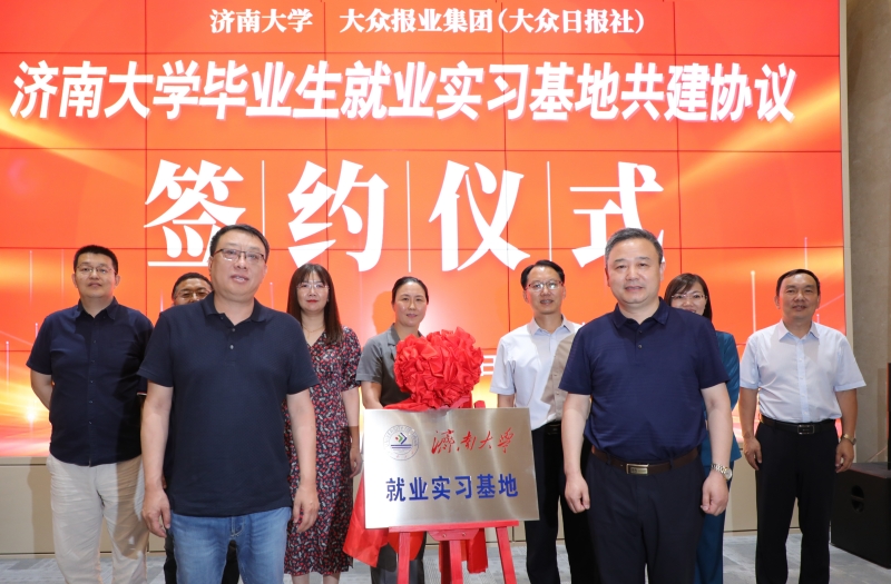 签约仪式上,党委学生工作部部长刘芝代表学校与齐鲁晚报副总编辑王健签订毕业生就业实习基地协议,查玉喜、蓝海为“beat365中文登录入口就业实习基地”揭牌。