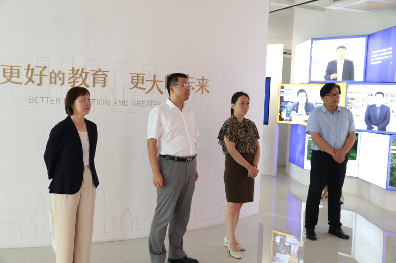 座谈会前,商华一行参观了企业与济南市教育局共同打造的济南教育创新中心,深入济南教育数字化展馆、未来学习中心、城市智慧教育运营中心,详细了解了教育新型基础设施及相关产品在城市教育数字化建设和教育改革评价中的应用情况,并看望了在企业工作的部分校友。