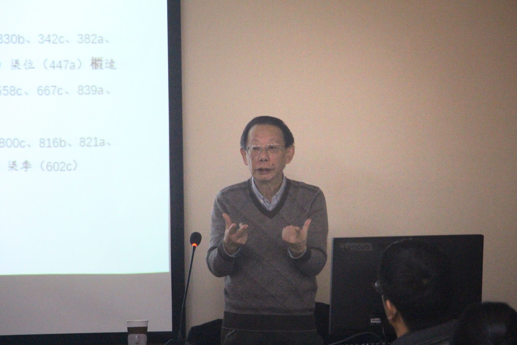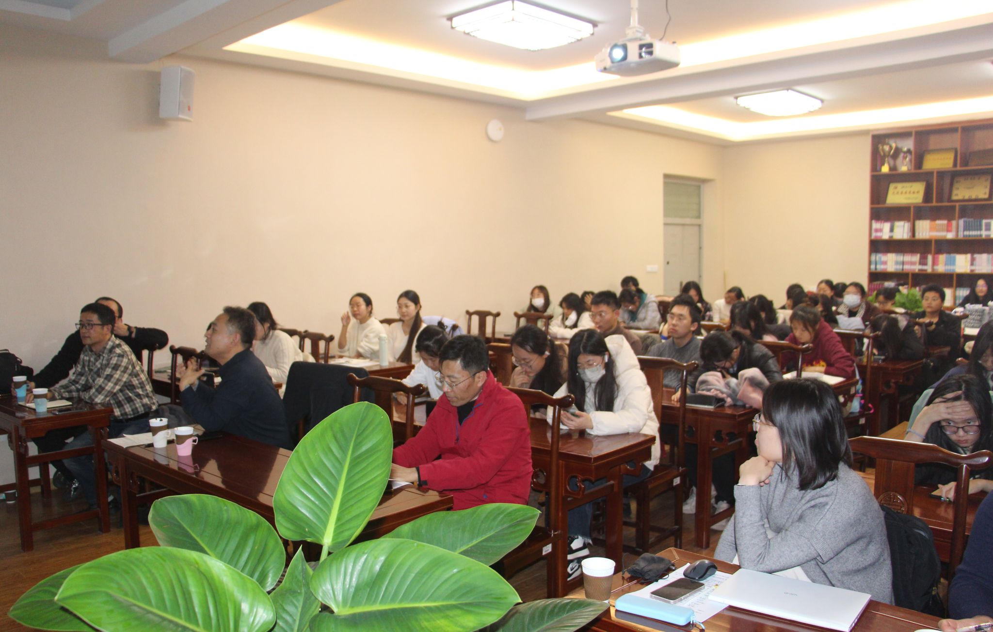 杨军教授学识渊博、视野开阔,引经据典、鞭辟入里地为大家讲解了汉语史上曾经发生过的“阴阳分调”和“浊音清化”两项重要音变,激发了在座师生的浓厚兴趣。师生们都被杨军教授的讲座所吸引,现场气氛热烈。