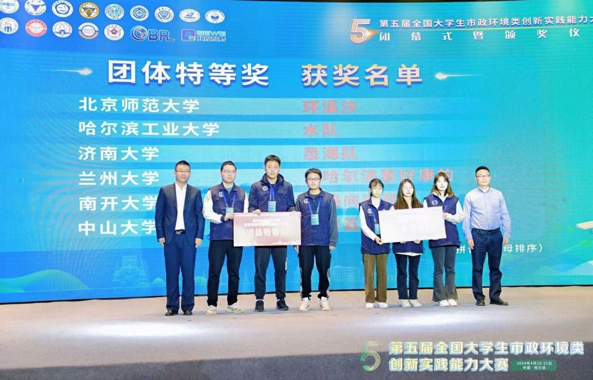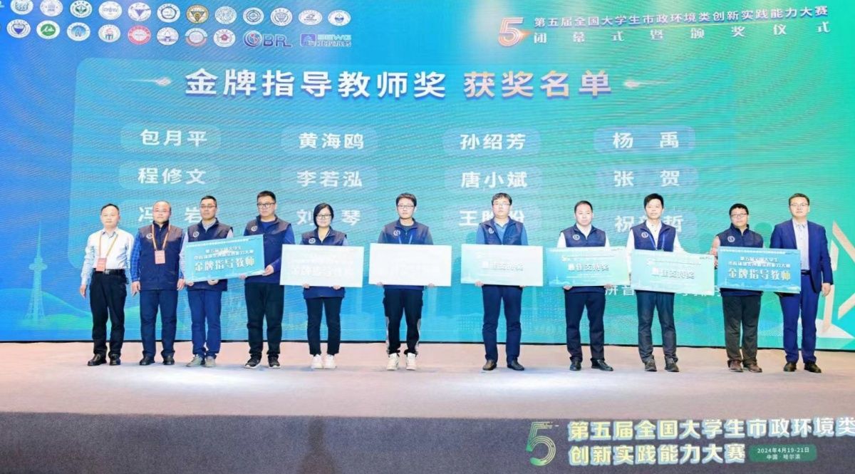 4月19日至20日,第五届全国大学生市政环境类创新实践能力大赛总决赛在哈尔滨市举办,beat365土木建筑学院给排水科学与工程专业教师冯岩带队参加线下竞赛并出席了闭幕式和颁奖典礼。由土木建筑学院学生林治全、李骏、李想组成的“泉海队”在本次比赛中表现出色,荣获团体特等奖,指导教师孙绍芳、冯岩同时荣获“金牌指导教师”称号。