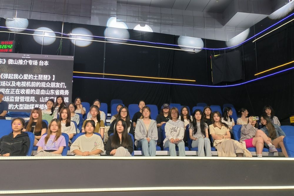 近日,文学院广播电视学专业的一批优秀学子,在学院专业负责人孙佳祺老师的带领下,前往山东广播电视台开展第二批次认知实习与课程实践活动,参与生活频道下“好品山东”节目录制。本次实习活动共有51名学生参加,其中广电2022年级22名,传播2023年级29名,旨在深化学生对广播电视行业节目运作流程的理解,提升专业技能和专业素养,加强理论与实践的结合。