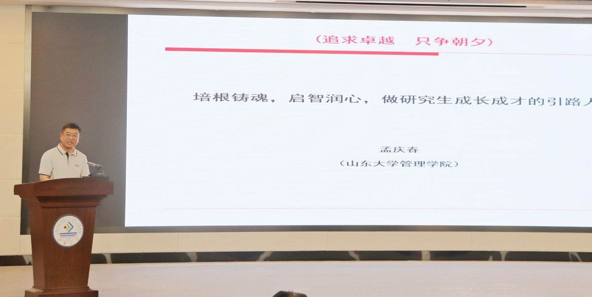 孟庆春以《培根铸魂,启智润心,做研究生成长成才的引路人》为题作专题讲座。围绕促进研究生教育高质量发展提出三方面建议:一是要强化思想引领,落实立德树人根本任务,了解掌握研究生思想状况,严格遵守科学道德和学术规范,把正确政治方向和价值导向融入教育和管理工作全过程;二是要坚持问题导向,开展富有价值的科学研究,紧跟时代,投身实践,聚焦学术,提升自我;三是要注重人文关怀,构建和谐共生的导学关系,在生活层面给予细致关心,在职业发展层面做好价值观引导。孟庆春结合典型案例,警醒研究生导师作为第一责任人必须明确岗位职责、立德修身、严谨治学、潜心育人,做学生的信仰之师、学问之师、品行之师。