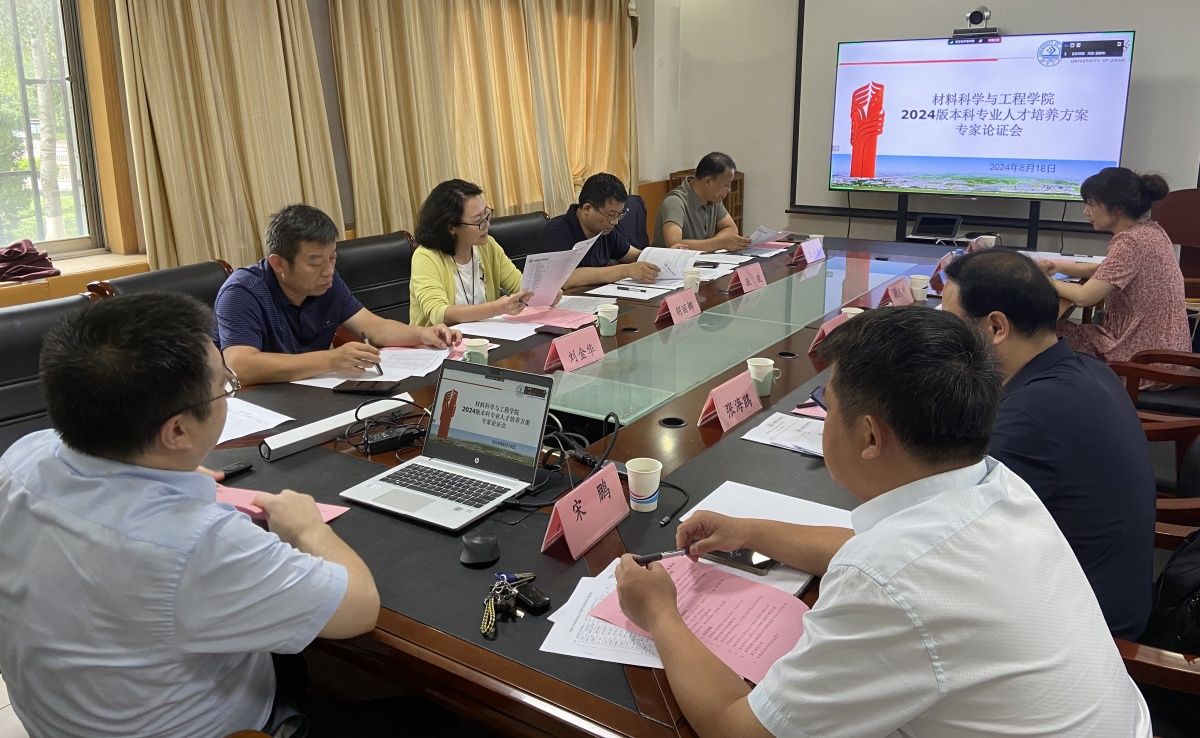 8月18日,材料类2024版本科专业人才培养方案专家论证会在材料东楼206会议室召开。论证会邀请了全国工程教育专业认证结论审议委员会委员、材料类专业工程认证委员会副主任委员、国家教学名师、全国高校首批黄大年式教师团队负责人、北京工业大学教授谢峻林,山东大学材料科学与工程学院副院长胡丽娜,山东师范大学化学化工与材料科学学院副院长耿琰,齐鲁工业大学材料科学与工程学院副院长刘金华,山东建筑大学材料科学与工程学院副院长袁兴栋,beat365中文登录入口教务处副处长张海鵾等为材料科学与工程学院三个本科专业、新能源材料创新实验班人才培养方案进行论证。论证会采取线上线下相结合的方式进行。会议由学院院长赵德刚主持,学院领导班子、系主任、专业负责人及骨干教师参会。