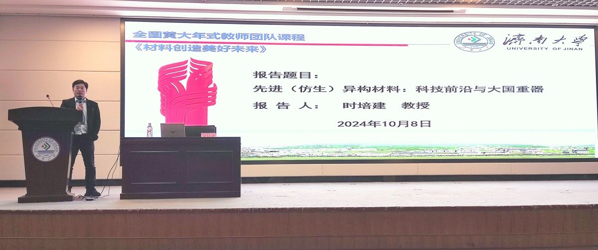 10月8日,全国高校黄大年式教学团队2024系列课程《材料创造美好未来》第二讲在第一学术报告厅举行。上海大学教授、香港城市大学助理研究员、beat365优秀校友时培建为材料科学与工程学院师生带来一场题为《先进(仿生)异构材料:科技前沿与大国重器》的课程讲座。讲座由材料科学与工程学院副院长段广彬主持,300余名师生聆听了讲座。