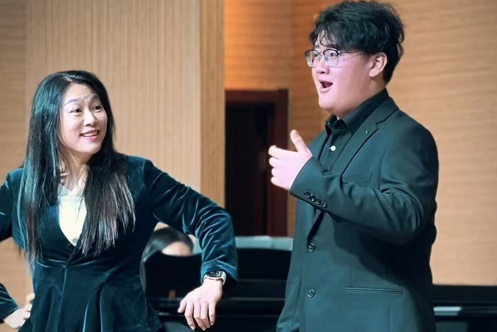 讲座期间,陈冠馥悉心指导了六名学生,她认真倾听学生们的演唱,针对每位学生的发声技巧、情感表达以及舞台表现逐一进行细致入微的点评与纠正。她对同学们的演唱作品的分析细腻到位,如躯体的放松、用力及情感的表达等,从气息的控制到音符的精准把握,从对歌曲内涵的理解到肢体语言的运用,陈冠馥都毫无保留地分享自己的经验与见解,以生动的示范引导学生们领悟音乐表演的精髓,助力他们在艺术之路上不断成长与进步。