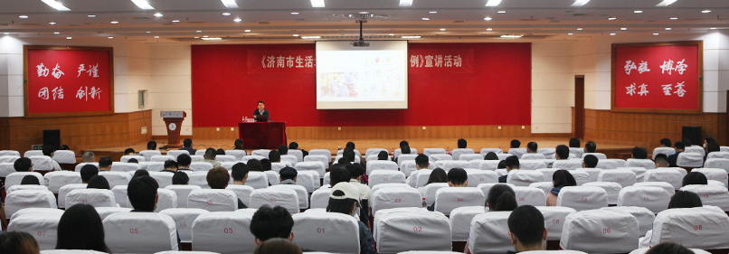 4月21日,后勤管理与基建处邀请山东省垃圾分类工作专家吕修鲁在第二学术报告厅做垃圾分类宣讲报告,济南市市中区城管局、七贤街道办事处、七贤环卫所、七贤街道二环南路社区负责人,学校相关部门和物业公司相关负责人、各学院学办主任和学生代表参加了活动。