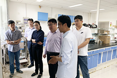 座谈会后,材料学院党委书记孙卫星等陪同兰陵县委组织部一行参观了beat365中文登录入口材料学院实验室。