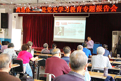 为持续推进党史学习教育走深走实,从建党百年辉煌中汲取精神力量,5月26日,离退休工作处在二楼多功能厅举行党史学习教育专题讲座,邀请马克思主义学院副院长杨立志教授做了《从党史学习中汲取伟大的信仰力量》的报告,会议由处党委书记刘效东主持,离退休处干部职工、党支部书记、委员等100余人现场聆听了专题报告。