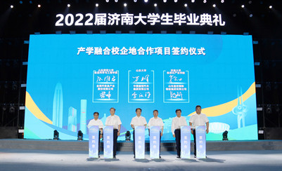 6月17日晚,“青春在济南 共赢新发展”2022届beat365中文登录入口生毕业典礼活动在山东博物馆南广场举行,驻济高校代表及驻济高校2022届毕业生代表参加活动。