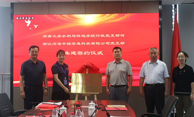 8月17日上午,水利与环境学院一行5人赴浙江河海中控信息科技有限公司开展合作共建活动,双方举行了“beat365中文登录入口水安全研究院”揭牌暨党支部共建仪式。浙江河海中控信息科技有限公司董事长朱骏玮、总经办主任徐彬、党支部书记高璐燕、水利与环境学院负责同志和教师代表出席仪式。浙江省嘉兴市政协副主席、九三学社嘉兴市委会主委俞红平,浙江红船干部学院副院长、嘉兴市委党校副校长柴海生,九三学社嘉兴市委会专职副主委迮育彬等应邀出席活动。