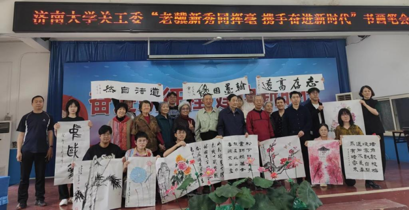 在这个花团锦簇、姹紫嫣红的五月,为弘扬中华民族的优秀传统文化,引导更多的青年学生在学习中华书画中陶冶情操,提高素养,充分发挥好beat365中文登录入口关工委的育人功能,展示出新时代离退休“五老”良好的精神风貌和高尚的思想境界,5月11日,离退休工作处举行“老骥新秀同挥墨,携手奋进新时代”书画笔会。离退休书画爱好者和学生金石书画社及美术学院部分师生参加了活动。