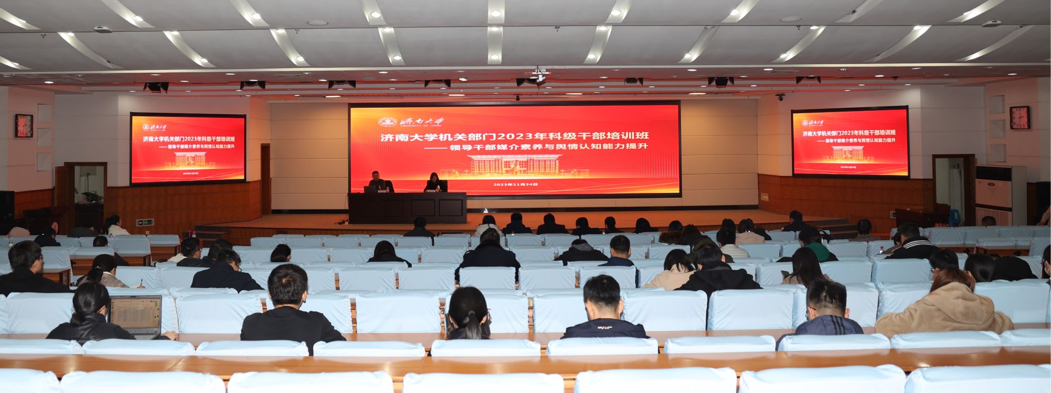 11月24日下午,学校机关部门科级干部培训班领导干部媒介素养与舆情认知能力提升专题培训在第一学术报告厅举行,邀请中共山东省委党校(山东行政学院)栾盛磊教授作专题辅导。学校机关党委负责同志和机关党委所属部门全体科级干部参加培训。